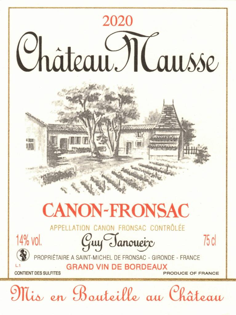 Le Château Mausse, situé sur l’un des points les plus élevés des riches côteaux de Canon-Fronsac, dans la commune de Saint-Michel-de-Fronsac. Il domine un beau vignoble de dix hectares, composé de vignes soigneusement encépagées, que l’actuel propriétaire, Guy Janoueix, conserve et maintient par des soins incessants.